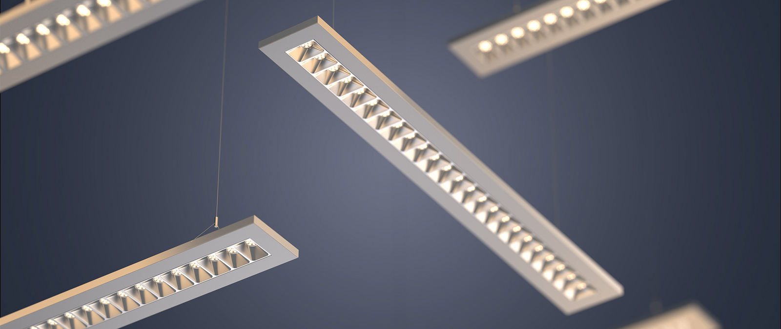 Hocheffiziente, entblendete LED Pendelleuchte für Bildschirmarbeitsplatzanwendungen