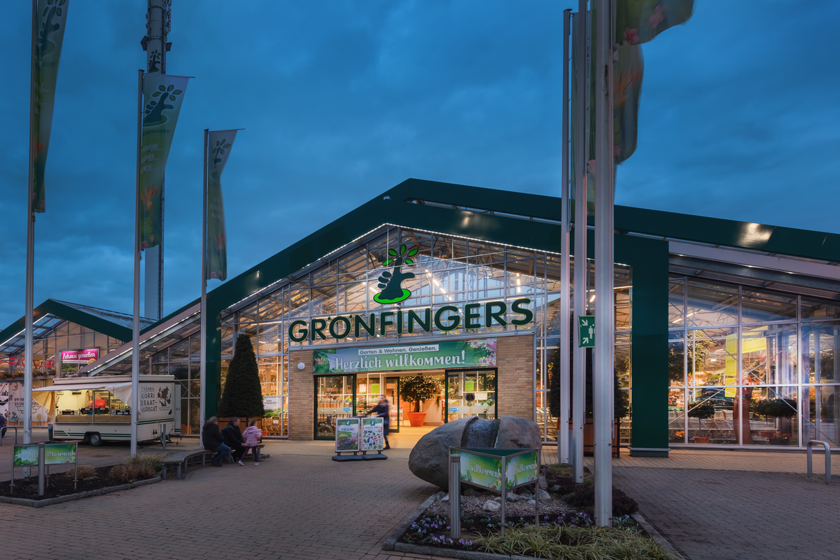 Aus einer genossenschaftlichen Gärtnerei vor den Toren Rostocks formte Gründer Rudolf Heinemann nach der deutschen Wiedervereinigung einen Gartenfachmarkt mit eigener Produktion. Heute stellt der Familienbetrieb mit der Marke „Grönfingers“ selbst im europäischen Vergleich eines der vielseitigsten, modernsten und nachhaltigsten Unternehmen der Branche dar: Insgesamt rund 12.800 m² Verkaufsfläche und noch einmal fast die gleiche Fläche für gärtnerische Eigenproduktion, Verwaltung, Lager und Nebengebäude sprechen für sich. Typisch für Gartencenter ist die Gewächshaus-Architektur aus Stahl und Glas. Wie sich solche Flächen zeitgemäß, attraktiv und wirtschaftlich beleuchten lassen, das zeigt ein erster Bauabschnitt von rund 6.000 m², der im vergangenen Jahr fertiggestellt wurde. Als Projektpartner entschieden sich Grönfingers für RIDI, nicht zuletzt aufgrund der Expertise des Herstellers sowohl für Licht- als auch für Steuerungslösungen.