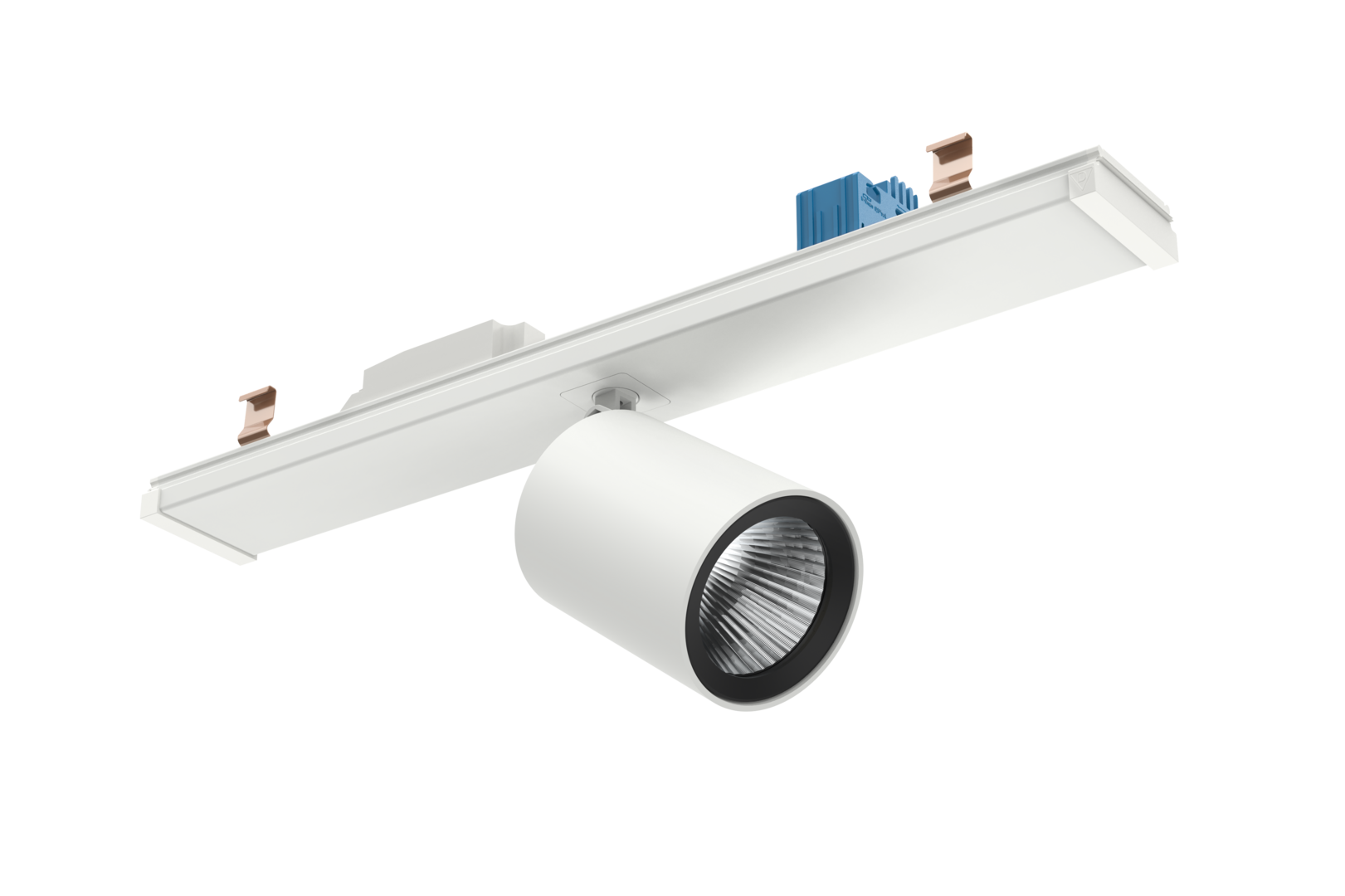 Spotlight module TINO of the RIDI LINIA EVO product family. Optical control by Reflector from , beam pattern symmetric, Spot, light emission direct. Lamps LED-M installed, Replacement by specialist possible. The luminaire generates a rated luminous flux of 3620 lm in light colour 840, adjustable luminous flux: No. The long LED service life of up to 50.000 h enables long use with consistent lighting quality. High quality of light thanks to a standard colour tolerance of < 3 SDCM. Aluminium, traffic white, similar to RAL 9016, protection rating IP20, permissible ambient temperatures -20 - 35 °C. Simple clipping-in for electrical contacting and mechanical fastening in the system-bound LINIA trunking system. With electronic electrical component On/Off. Replacement by specialist possible. Nominal voltage 220 - 240 V AC/DC 50 - 60 Hz.