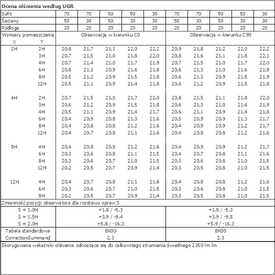 | Znamionowy strumień świetlny | 2350 lm |