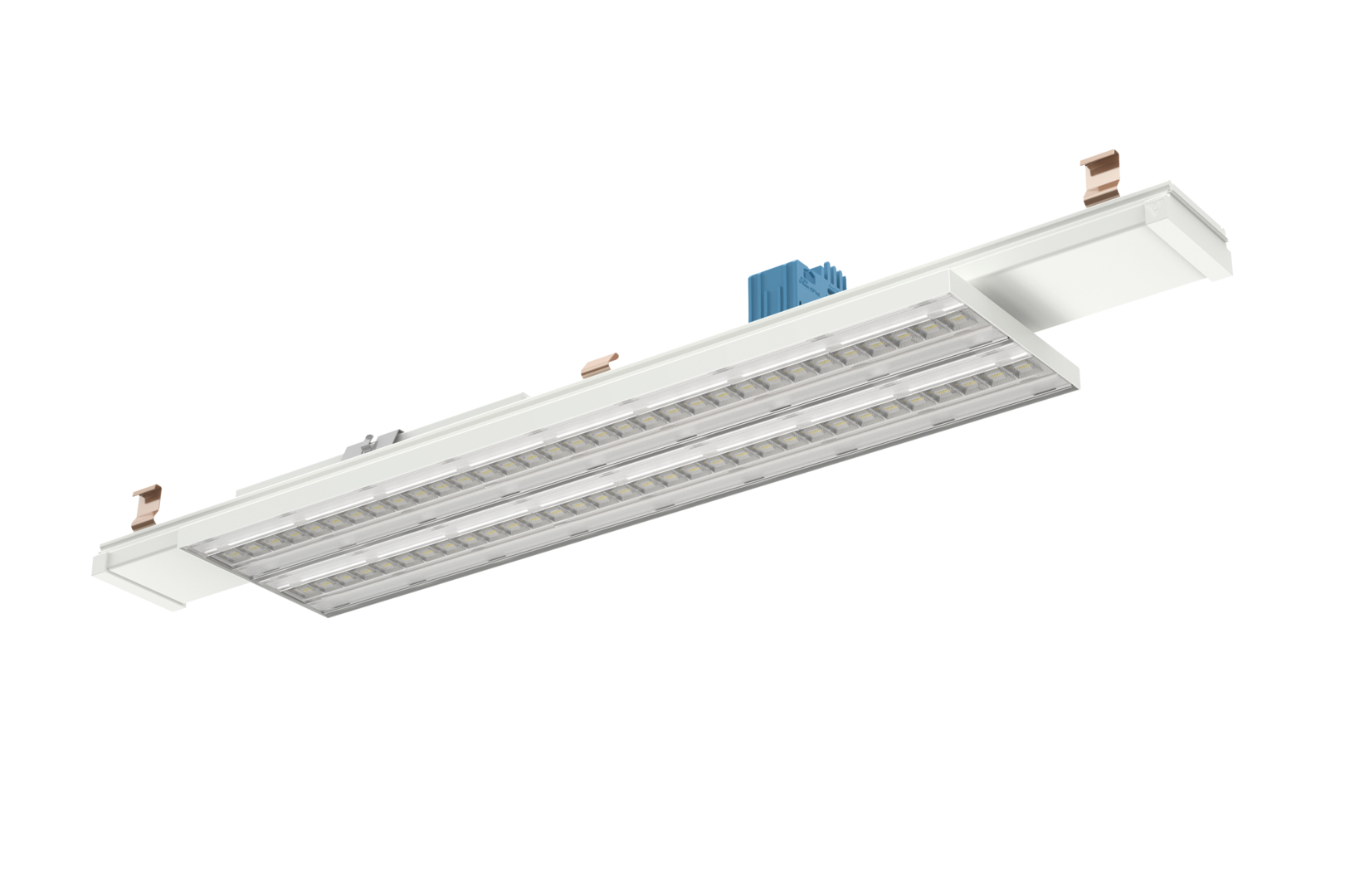 Moduł reflektora BRITT2 z rodziny produktów RIDI LINIA EVO. Układ optyczny Soczewka z PMMA przezroczysty, układ wiązki symetryczny, podwójna belka asymetryczna, emisja światła bezpośredni. Źródło światła LED-M zainstalowany, możliwe Wymiana przez specjalistę. Oprawa oświetleniowa generuje znamionowy strumień świetlny 5590 lm w barwie światła 830, regulowany strumień świetlny: w etapach. Długa żywotność diod LED do 100.000 h umożliwia długie użytkowanie przy stałej jakości oświetlenia. Wysoka jakość światła dzięki tolerancji barwowej < 3 SDCM. Stal, kolor biały, podobny do RAL 9016, stopień ochrony IP20, dopuszczalna temperatura otoczenia -25 - 35 °C. Proste wpinanie w celu zapewnienia styku elektrycznego i mocowania mechanicznego w systemowych listwach LINIA. Z elektronicznym statecznikiem xFlex. Wymiana przez specjalistę możliwe. Napięcie znamionowe 220 - 240 V AC/DC 50 - 60 Hz.