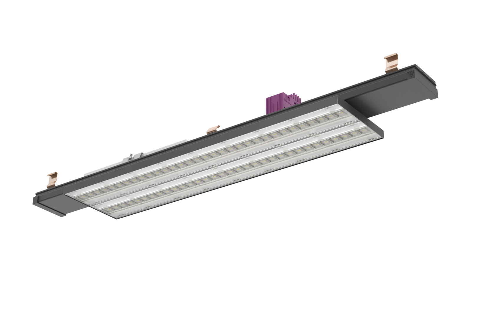 Moduł reflektora BRITT2 z rodziny produktów RIDI LINIA EVO. Układ optyczny Soczewka z PMMA przezroczysty, układ wiązki symetryczny, podwójna belka asymetryczna, emisja światła bezpośredni. Źródło światła LED-M zainstalowany, możliwe Wymiana przez specjalistę. Oprawa oświetleniowa generuje znamionowy strumień świetlny 5590 lm w barwie światła 830, regulowany strumień świetlny: bezstopniowy. Długa żywotność diod LED do 100.000 h umożliwia długie użytkowanie przy stałej jakości oświetlenia. Wysoka jakość światła dzięki tolerancji barwowej < 3 SDCM. Stal, czarny, podobny do RAL 9005, stopień ochrony IP20, dopuszczalna temperatura otoczenia -25 - 35 °C. Proste wpinanie w celu zapewnienia styku elektrycznego i mocowania mechanicznego w systemowych listwach LINIA. Z elektronicznym statecznikiem DALI. Wymiana przez specjalistę możliwe. Napięcie znamionowe 220 - 240 V AC/DC 50 - 60 Hz.
